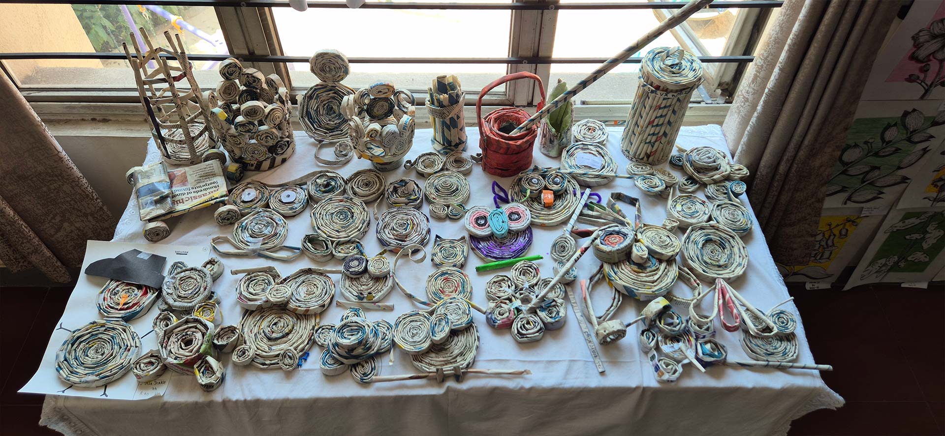 Adding to the visual spectacle, Grade 2’s delicate yellow paper butterflies, folded and affixed to floral-patterned plates, appeared to have just alighted on the blossoms, while Grade 1’s trees featured canopies of colourful sketch-pen spirals, creating a striking effect.