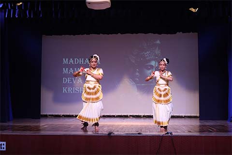 With a divine invocation in the form of a Mohiniattam dance, began the cultural extravaganza which was followed by a mesmerizing Bharatanatyam performance. Our traditional folklore came alive in vivid hues as the majestic Yakshagana dance unfolded, depicting the Dashavatara with an emphasis on the Varaha avatar of Lord Vishnu. The stage then reverberated with old Bollywood melodies during a group song, inviting the audience to join in, and fostering a sense of collective joy and nostalgia. Following the musical rendition, ‘The Dynamic Duo’ presented a fusion of hip-hop and Bollywood, uniting the two vastly different genres seamlessly.
