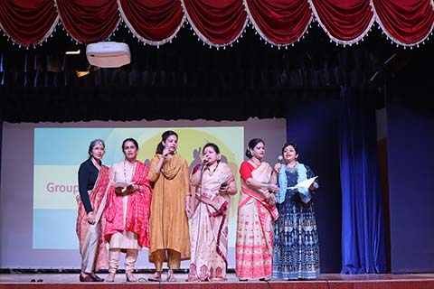 The Early-year teachers embarked on a unique venture, presenting "The Real Reel", a playful take on Instagram reels, showcasing their camaraderie in a light-hearted manner. Subsequently, a harmonious classical group dance transported everyone to a realm of grace and symmetry, demonstrating the beauty of unity in diversity. An energetic dance number, performed by the support staff, affectionately known as 'Akkas,' beautifully expressed their love for the children they nurture. The primary-year teachers enchanted the audience with a folk dance that conveyed the simple yet profound message of cherishing the present moment.