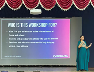 A workshop on cybersecurity was conducted for students of Grades 4 and 5 on the 16th of July. The guest speaker, Ms Arti Vasudevan, has been instrumental in spreading awareness among today’s generation which requires awareness about the perils of being online and protecting their online identities.