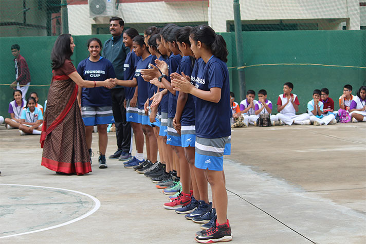Fifteen formidable basketball teams locking horns for that crowning glory and shining cup made for a riveting sport of sweat, grit, miss and hit. The annual Founder’s Cup Basketball Tournament held on 7th and 8th November 2019 on NPS Koramangala school grounds, was a spectacle of true sportsmanship. In their address to the teams, Sports Vice-Captain Smarth Pangal and Sports Coordinator Ridhi Mehra fueled the spirit of the vigorous fighters. The tournament was declared open by the Principal Ms. Jyotsna Nair after a welcome address from the Senior Coordinator Ms. Pramila Menon who urged the players to do their best and not to ponder too much on the results. In a series of intense and grueling battles, determination and talent took center stage. Even as an intense spirit of rivalry pervaded the atmosphere, the players showed great camaraderie and sportsmanship. Interspersed with the matches were entertaining performances of song and dance by students from grades 9 to 11, which served to cheer the audience and players alike. The semifinals on both days were close games which kept the spectators on their toes till the very end. While all the teams enthralled the audience equally and were poised for victory, Bishop Cottons Boys School among the boys and Christ Junior College among the girls emerged victors and penned their names in the record books.