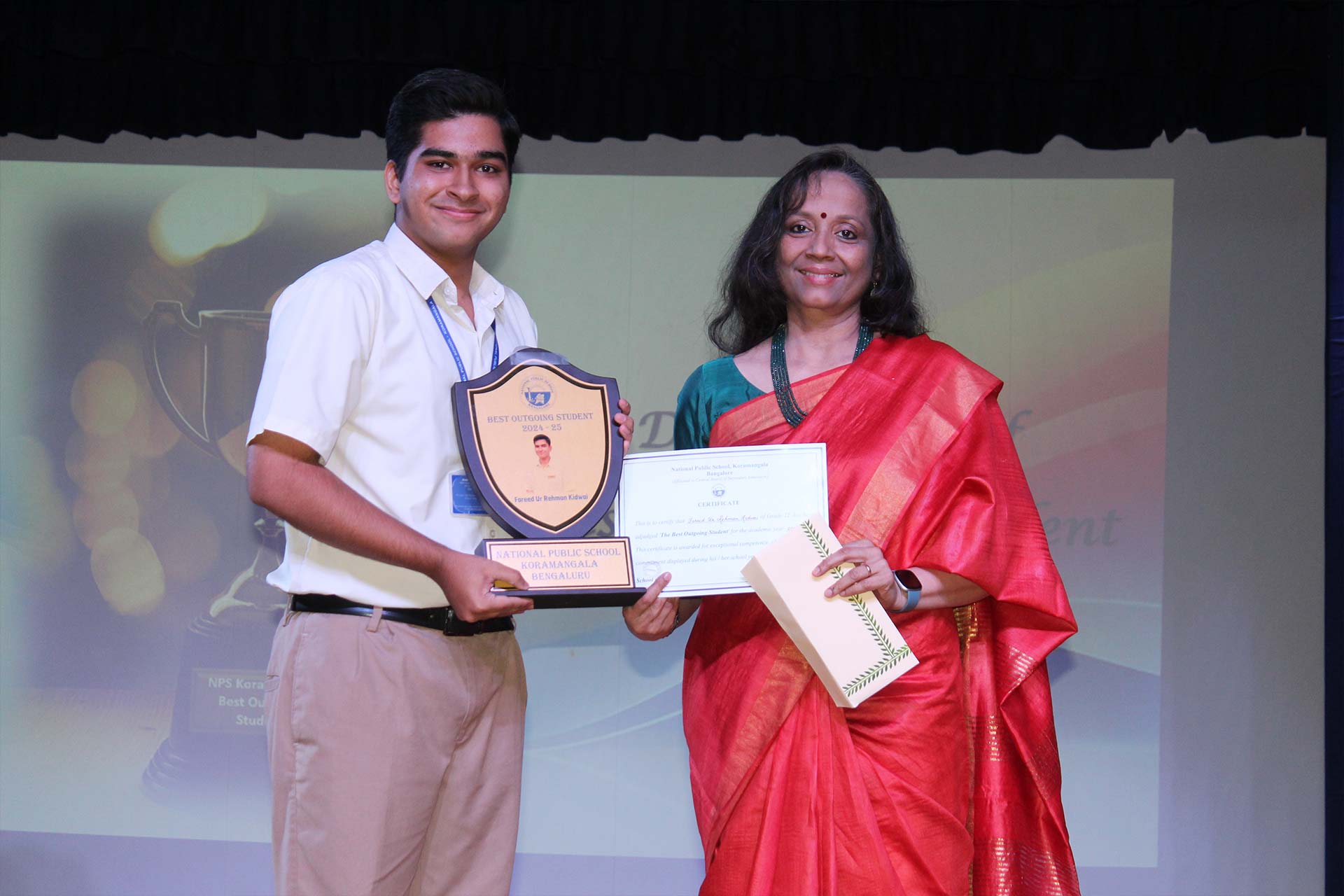 Certificates of Appreciation were conferred upon Student Council members, interschool competition winners, and students with perfect attendance. School Prefect Rakshak Jain delivered a heartfelt speech reflecting on the year’s accomplishments, expressing gratitude for the unwavering support that helped his team achieve their ambitious goals. The highlight of the event was the announcement of the Best Outgoing Student award, presented to Farid Ur Rahman Kidwai for his exceptional leadership and all-round excellence. Adding vibrancy to the ceremony, students of Grades 8 and 9 performed a captivating classical dance fusion, Samanway.