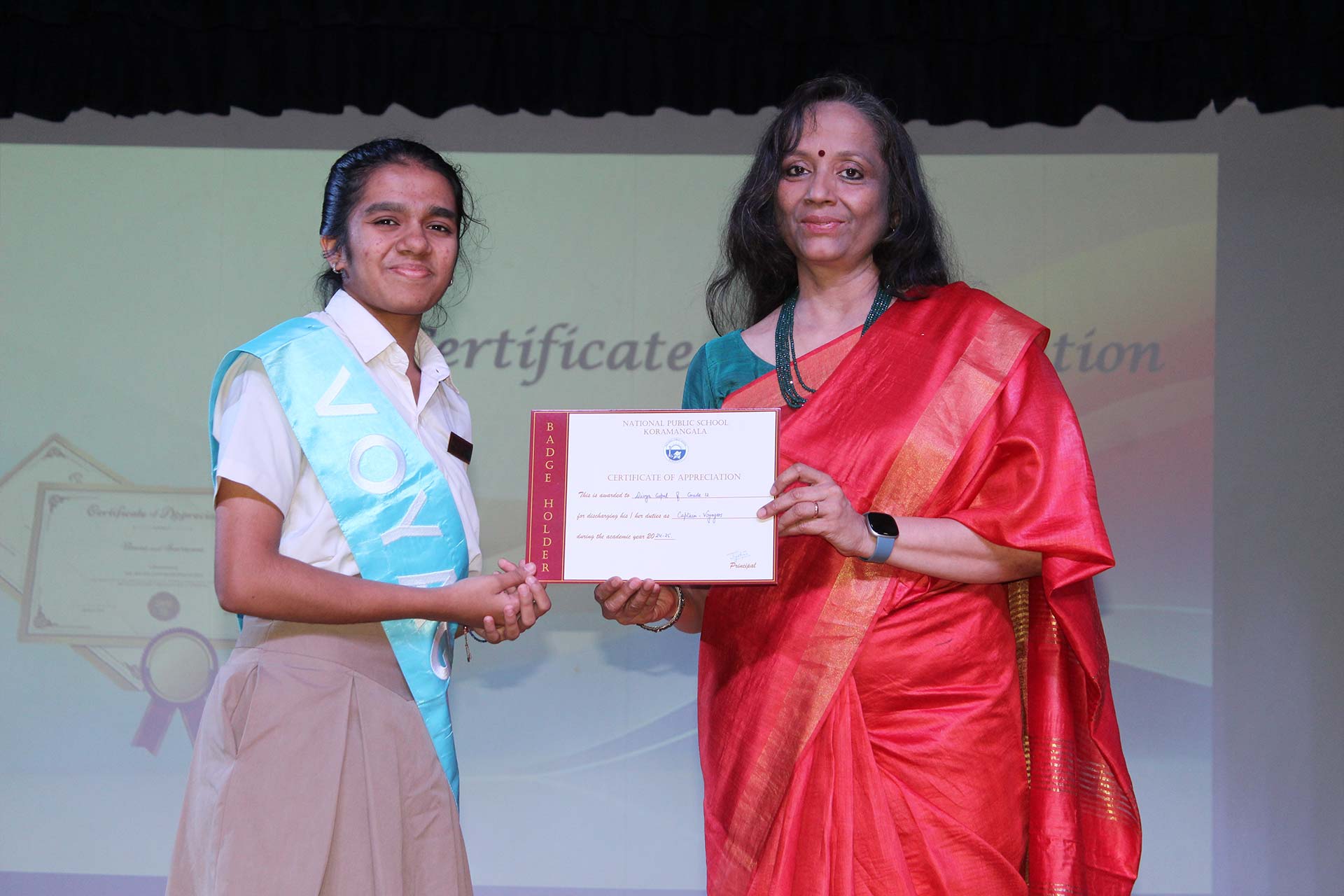 The ceremony concluded with a vote of thanks by Vice Prefect Samarth D. Gawda, followed by a touching gesture from Grades 9 and 11 students, who presented Best of Luck cards to Grades 10 and 12, wishing them success in their board exams and future endeavours.