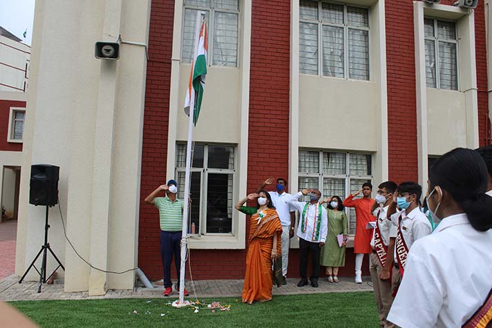 15th August 2022, the day marking 75 years of independence from British clutches, was celebrated with great enthusiasm and patriotic fervour by the students and staff at NPS-Koramangala. The celebrations began with the hoisting of the Tiranga by the Principal, Ms. Jyotsna Nair, along with the tunes of the national anthem on the school grounds.