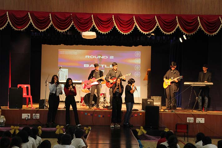 The Music Club organised an inter-house music event on November 14, 2022. It involved two rounds. In the first round, the Houses performed a classical song adding their own western touch to it. The second round was a ‘Battle of the Bands’ round where Houses performed two songs of their choice. The Pioneers emerged victorious after a close fight, followed by the Voyagers and Explorers.