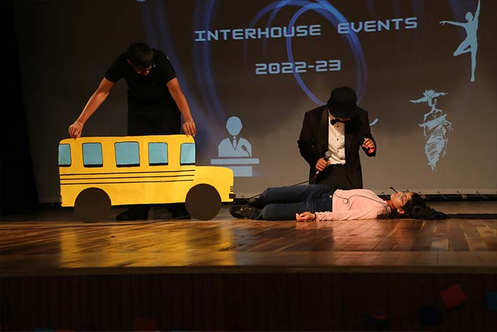 On 14th November 2022, the Dramatics Club conducted the inter-house dramatics event. Each House was given a famous movie and the task was to extend or incorporate the storyline of the movie into a horror skit, lasting 10- 12 mins. The Voyagers emerged victorious with the Pioneers as a close second.