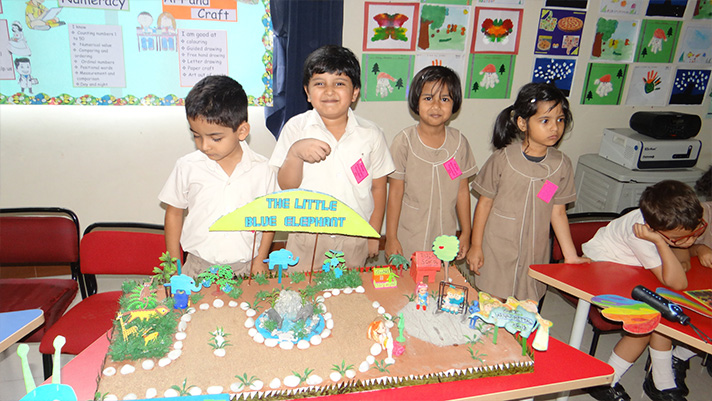The Kindergarten children showcased their creativity and talent at the curriculum based exhibition held on Saturday, 24th March 2018. The event provided a platform for children to display their talent and confidently showcase their learning through the year. Immersed in their creative world the little ones animatedly described their work to the visitors under the guidance of their teachers. Accolades showered in plenty.