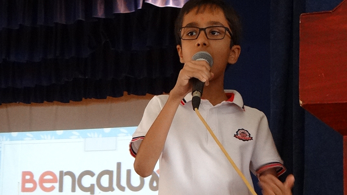 The Week began with an address by Ms. Roopa Ravindran (Faculty, NPS-HSR). She familiarized the 5th graders with the history and important landmarks of the city. The activities organized for the students through the week included – a presentation on the History of Bengaluru by Grade 5, a presentation on Heritage of the city by Grade 4, collage making by Grade 3 and creative writing on the reforms they would like to introduce if they were elected leaders of Bengaluru. Children also relished the typical delicacies of the city which they loved to elucidate about too. The Week culminated with an assembly put up by the students of Grades 1-5. Kannada song, Kannada poem, a dance drama on the birth of the city, its eminent personalities and landmarks were the highlights of the assembly. Lastly, a quiz tested what the students gained through the week.