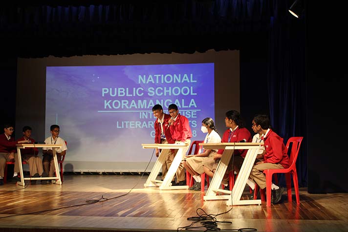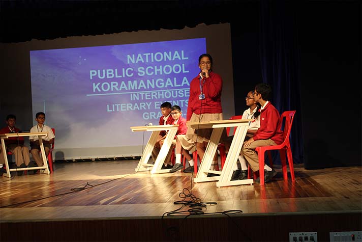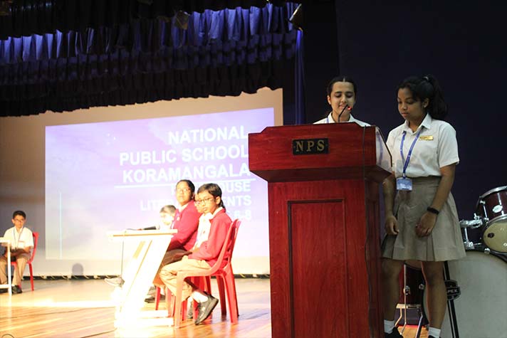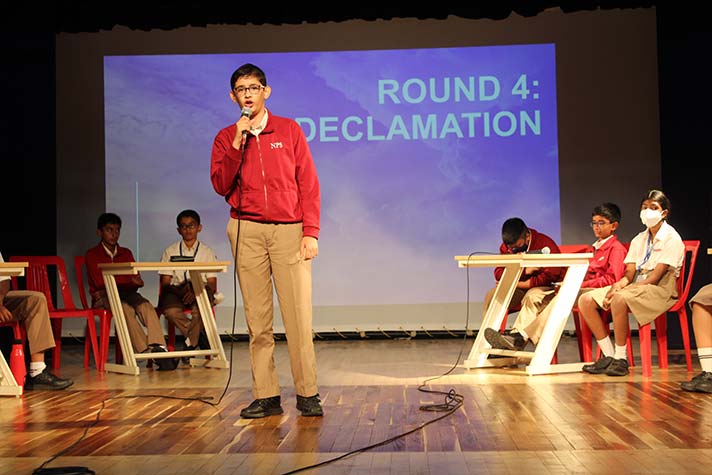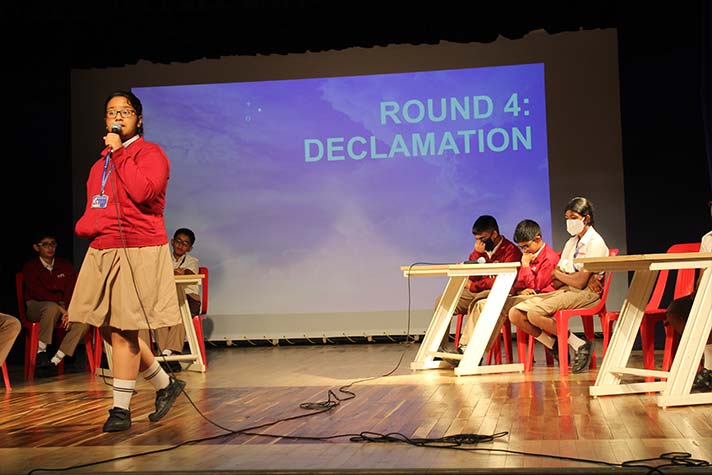 The junior inter-house literary event was conducted on 10th December. The entire event consisted of four rounds- The first and third rounds were direct spelling rounds, the second was an idiom round and the fourth was a declamation round. The first round of spelling was a direct round with words of lesser difficulty compared to the third round. Each house took turns, first letting the sixth grader spell, then the seventh grader and finally the eighth graders. The same rules applied to the third round, which was a direct round with higher difficulty. For the second round, participants were shown a picture on the screen and were given 30 seconds to guess the idiom that the picture represented.