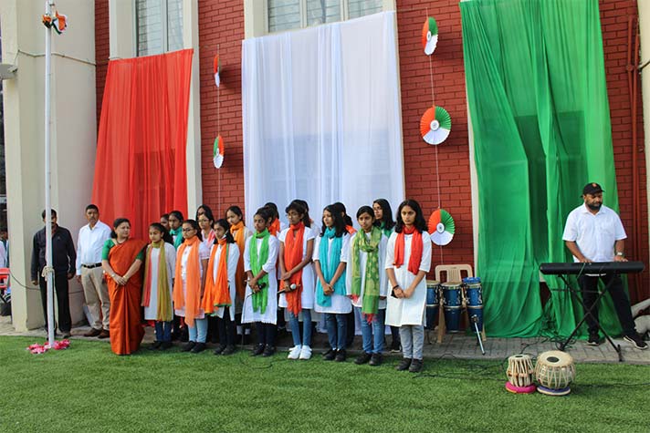 NPS, Koramangala celebrated India’s 74th Republic Day on 26th January with patriotic zeal and fervour in the school grounds. Flanked by members of the Student Council, the Principal Ms. Jyotsna Nair unfurled the tricolour to a mellifluously patriotic rendition of the National Anthem by the School Choir. As Basant Panchami coincided with Republic Day, students of Grade 8 dedicated a spiritually enriching and devotional ‘Saraswati Vandana’ to the Goddess of Knowledge. Ardently eloquent and insightful speeches by Muskaan Mittal (Grade 10) and Faculty Member, Dept. of English, Ms Anupama Singh, paid homage to the selfless sacrifice of our brave freedom fighters and the defence forces. They exhorted the people of this young nation to strengthen the endeavour of nation-building. The dance performance, ‘Bharat Ka Chehra’ by the students of Grade 8 portrayed the future of our nation with the promise to lead the nation to greatness. Afterwards, a skit displayed the aspirations and ideas of the members of the constituent assembly about our country India and the adoption of the constitution as the law of the land along with oath-taking of the Preamble- all put together by the students of Grades 6-8- brought the moments of the historical event alive. Students of Grade 9 ignited the blaze of patriotism by singing a melodious rendition of ‘Bhati me Bharatam’ in Sanskrit. Finally, a mellifluous medley of patriotic songs by the students of Grades 7 and 8 concluded the fantastic celebration of our freedom, our rights and our duties as Indians.