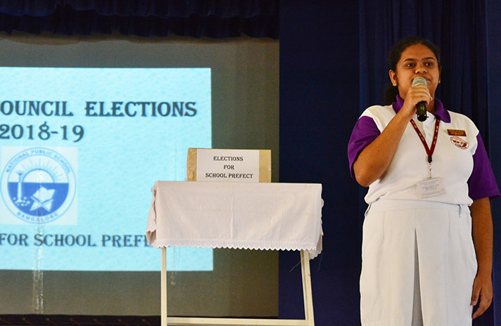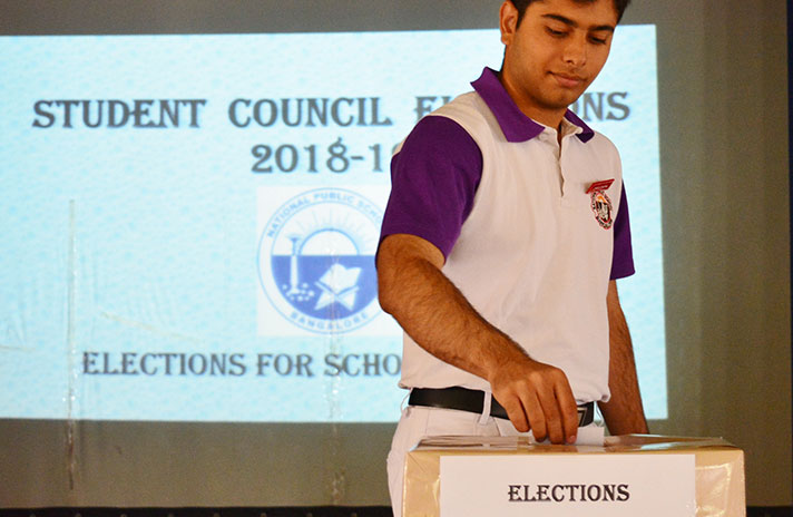 Elections for the office bearers – School Prefect and House Captains- were held at National Public School, Koramangala on 6th April 2018. The elections provided an opportunity to the students of Grade 12 to experience firsthand, the exercising of their most important fundamental right: the Right to Vote.
