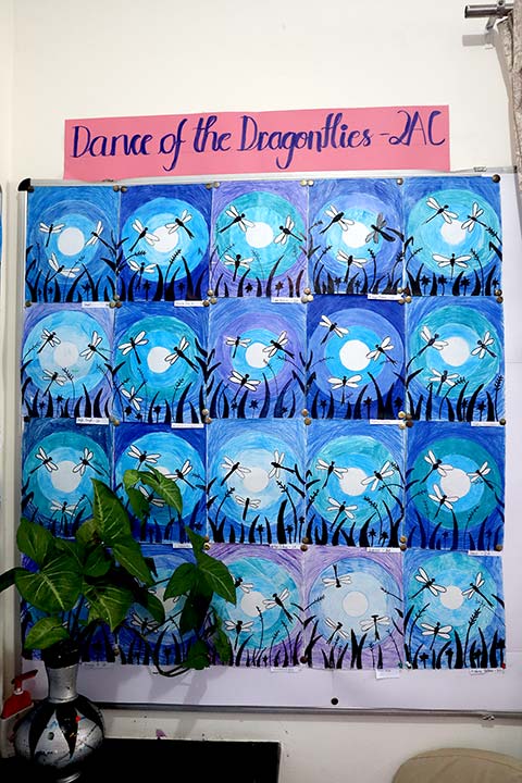 NPS Koramangala was aglow with resplendent colours on 10th February 2024 on the occasion of the annual art exhibition, The Art Hub. The exhibition showcased various artworks of students of Grades 1-10, made throughout the academic year. The creativity of the tiny tots of primary grades was on full display, from the gallery of little birds by Grade 1 and colour shading by Grade 2 to the illusionary agamographs by Grade 3. Among other exhibits, Mandala art and match-stick craft by Grade 4 students, and zentangle tree art by Grade 5 were much appreciated by the visitors. The senior grades unleashed their artistry with neon sketches of the wild by Grade 6; the painted woven scenic plates by Grade 8; and Kalamkari and pen art by Grade 7.
