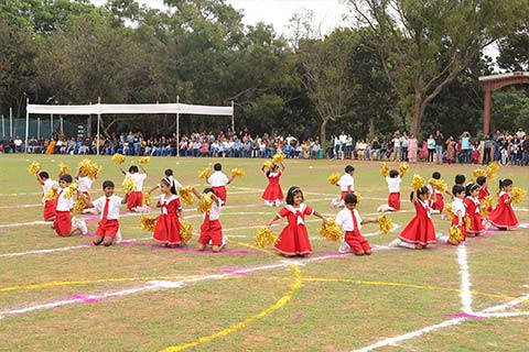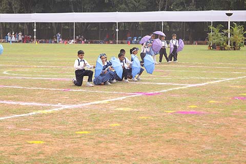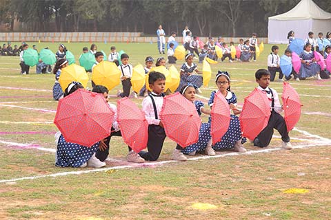 The speech by the dignitaries was food for thought for the parents, teachers and children who listened with rapt attention to their anecdotes and praise for the students. The displays soon followed. With the colourful pom-poms, Grade 1’s display, ‘Bedazzlers’ was mesmerising and surely brought a smile to every person who was witness to this cuteness. Followed by the vibrant students of Grade 2, with their colourful umbrellas and smart black and white costumes, the display was aptly titled Umbrella Euphoria. Rhythmic Rhaposdy by Grade 3 was a display merging the aspects of aerobics and Bharatnatyam and they wowed the audience with their performance to peppy foot-tapping numbers.