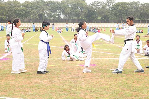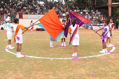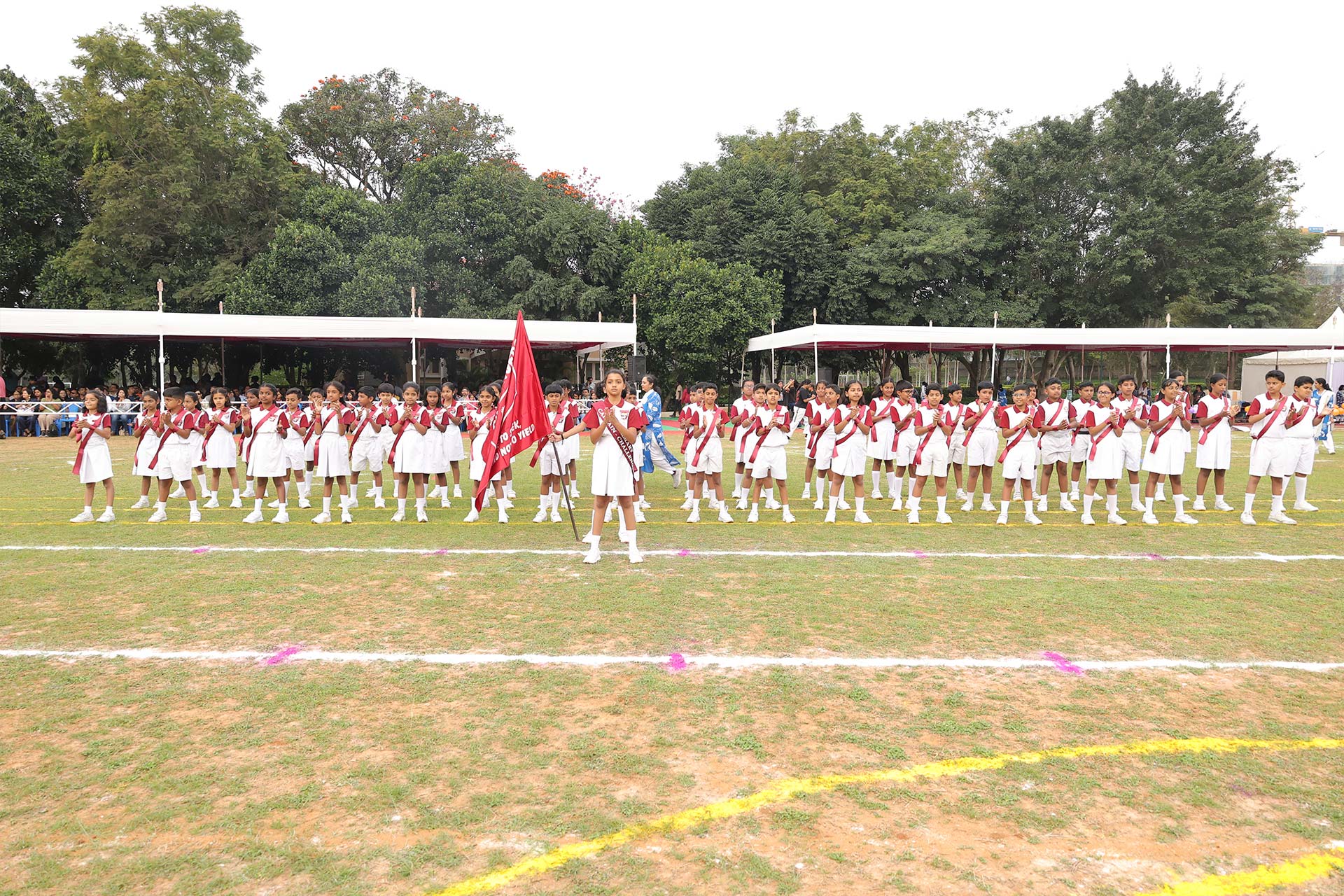 The Track and Field events as well as recreational events were conducted after the displays. The four houses cheered for their team with balloons, face paint and pom poms and continued to keep the air buzzing with slogans and cheers. Following this was the closing ceremony, with awards and individual trophies being presented.